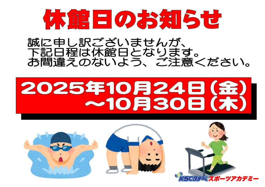 10月24日(金)~30日(木)まで休館日となります。